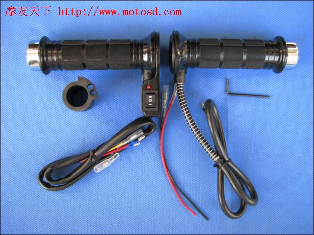 美国电热手把网站www.hotgrip.com 美国电热手把耗电量60瓦,比世荣手把多耗电35瓦。左手把用粘胶固定,世荣用铁环锁紧专利固定。售价700元(95美圆)比世荣电热手把多NN倍。世荣手把质量和功能也敢与美国的媲美。世荣电热手把已经成功打入美国市场,很受欢迎.